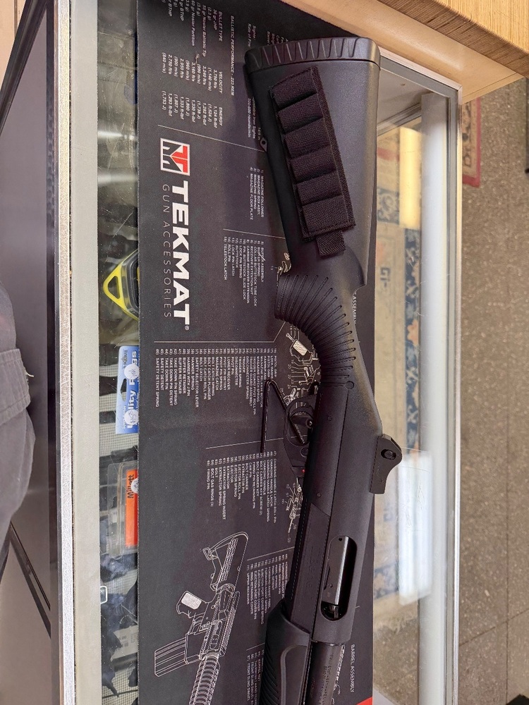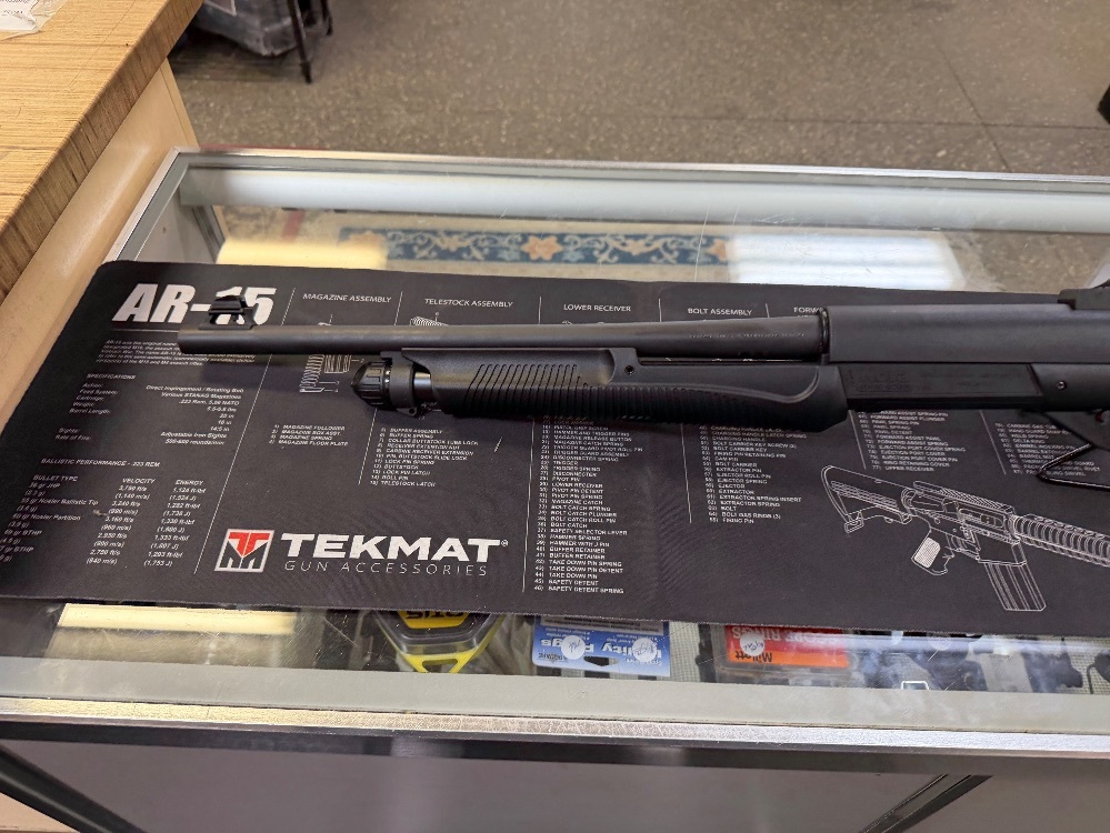Benelli Arms model Nova pump action shotgun, chambered in 12Ga. Comes with a 18.5" barrel. This is a used firearm. Use pictures for accurate description. If you have any questions or need more detailed pictures, please contact us