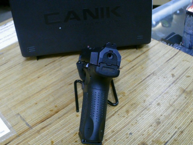 Canik model TP9 SF Elite semi-auto pistol. Chambered in 9mm. Comes with a 3.5" barrel and original factory case. This is a used firearm. Use pictures for accurate description. If you have any questions or need more detailed pictures, please contact us.