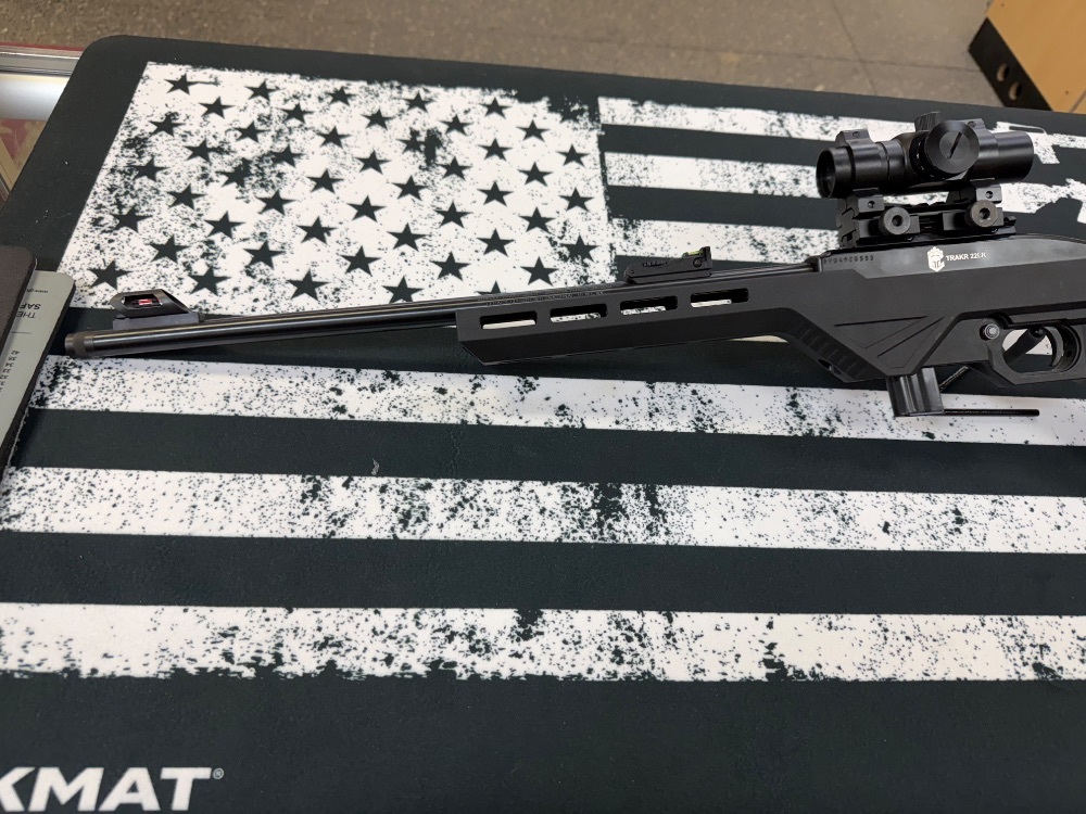 Citadel model Trakr emi-auto rifle. Chambered in .22LR. Comes with a 18" barrel and has a red dot scope. This is a used firearm. Use pictures for accurate description. If you have any questions or need more detailed pictures, please contact us