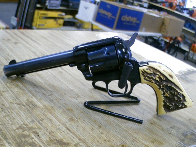 Colt model Frontier Scout single action revolver. Chambered in 22LR. Comes with a 4.75" barrel. This is a used firearm. Use pictures for accurate description. If you have any questions or need more detailed pictures, please contact us.