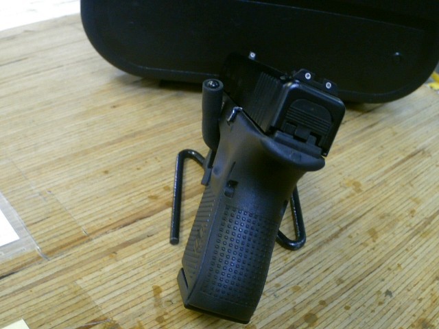Glock model G26 Gen 5, chambered in 9MM. Comes with a 3.43" barrel, trijicon sights and original case. This is a used firearm. Use pictures for accurate description. If you have any questions or need more detailed pictures, please contact us