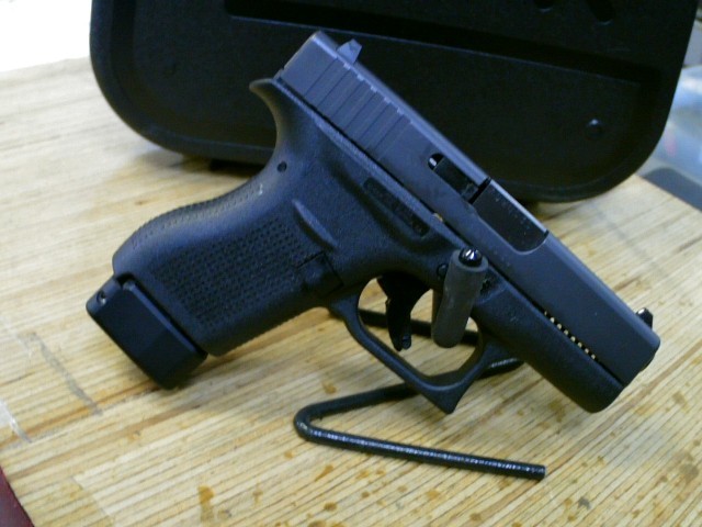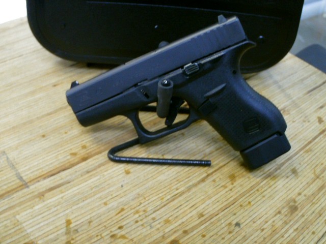 Glock model G42 semi-auto pistol, chambered in .380 Auto. Comes with a 3.25" barrel, original factory case, and 3 magazines w/extenders. This is a used firearm. Use pictures for accurate description. If you have any questions or need more detailed pictures, please contact us.