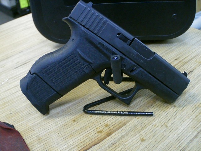 Glock model G43 semi auto pistol. Chambered in 9mm. Comes with a 3.4" barrel, 3 magazines, holster and original case. This is a used firearm. Use pictures for accurate description. If you have any questions or need more detailed pictures, please contact us.
