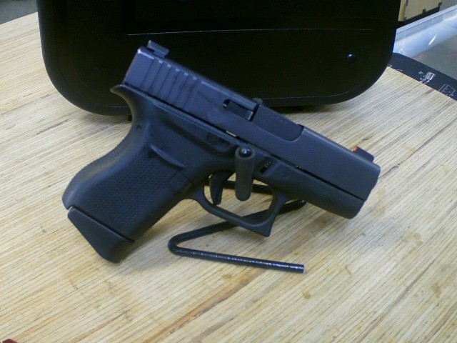 Glock model G43 semi-auto Pistol. Chambered in 9MM. Comes with a 3.41" barrel, 2 magazines and original case. This is a used firearm. Use pictures for accurate description. If you have any questions or need more detailed pictures, please contact us.