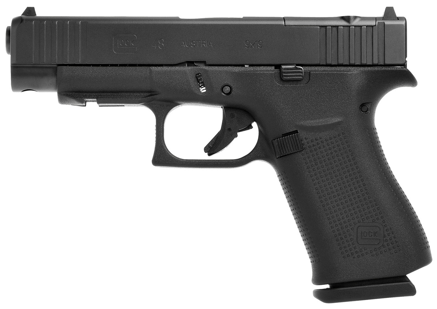 The Glock 48 MOS Slimline Compact has built-in beaver tail, match-grade GLOCK Marksman Barrel (GMB) and precision-milled front serrations. It features Glock's Safe Action system which provides a consistent trigger pull from the first to the last round; three automatic independently operating mechanical safeties; polymer frame with hardened steel guides; ideal grip angle and low weight. The advanced surface treatment of the slide results in optimal hardness by considerably reducing wear and tear and it makes it corrosion resistant, even when operating in saltwater conditions. MOS features a slide that is precision machined to provide a mounting system for popular optic sights. *Note- The G48 with the Modular Optic System (MOS) does not come with adapter plates. Includes two magazines, mag loader, cleaning set, pistol case and gun lock.
