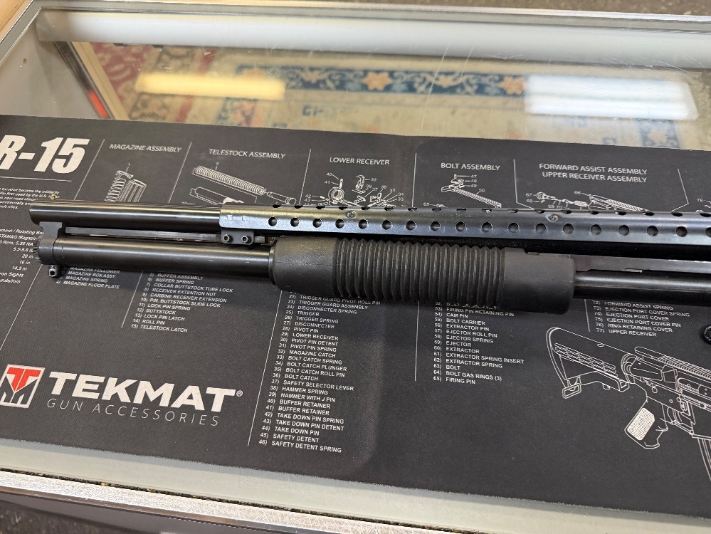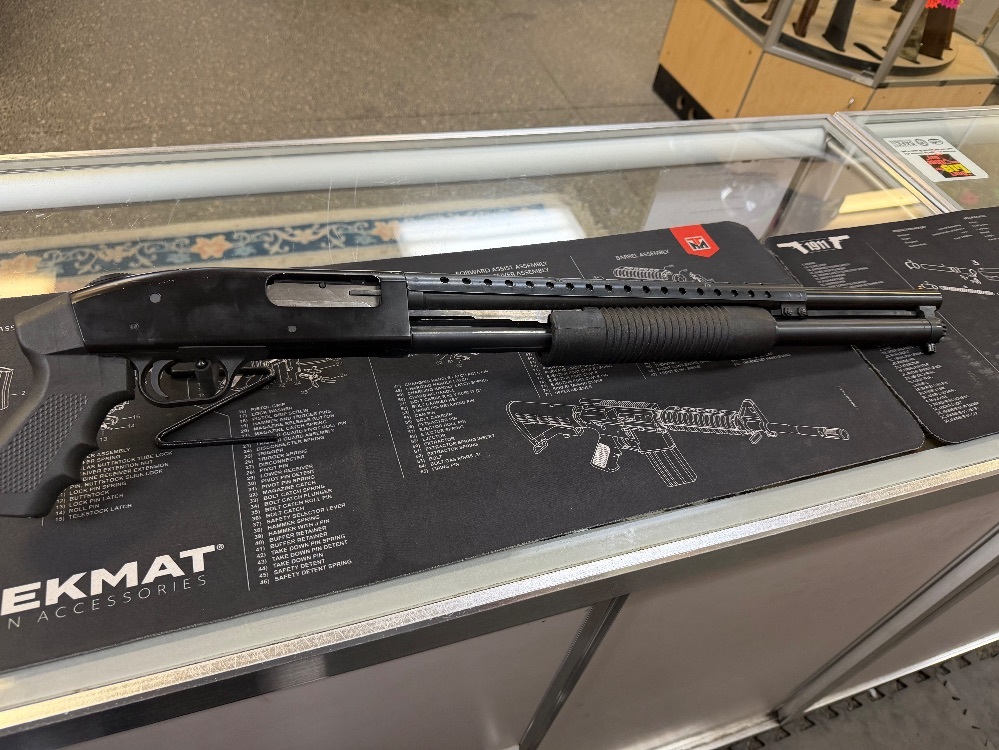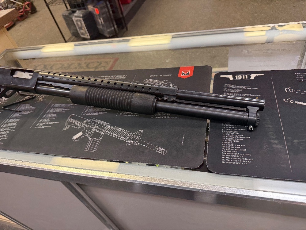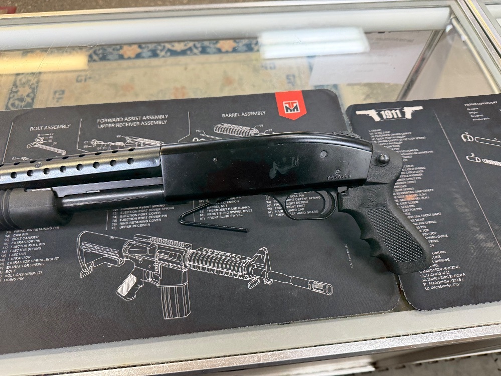 Mossberg model 500A pump action shotgun chambered in 12GA. Comes with a 18.5" barrel, fixed choke, 3" chamber and pistol grip. This is a used firearm. Use pictures for accurate description. If you have any questions or need more detailed pictures, please contact us