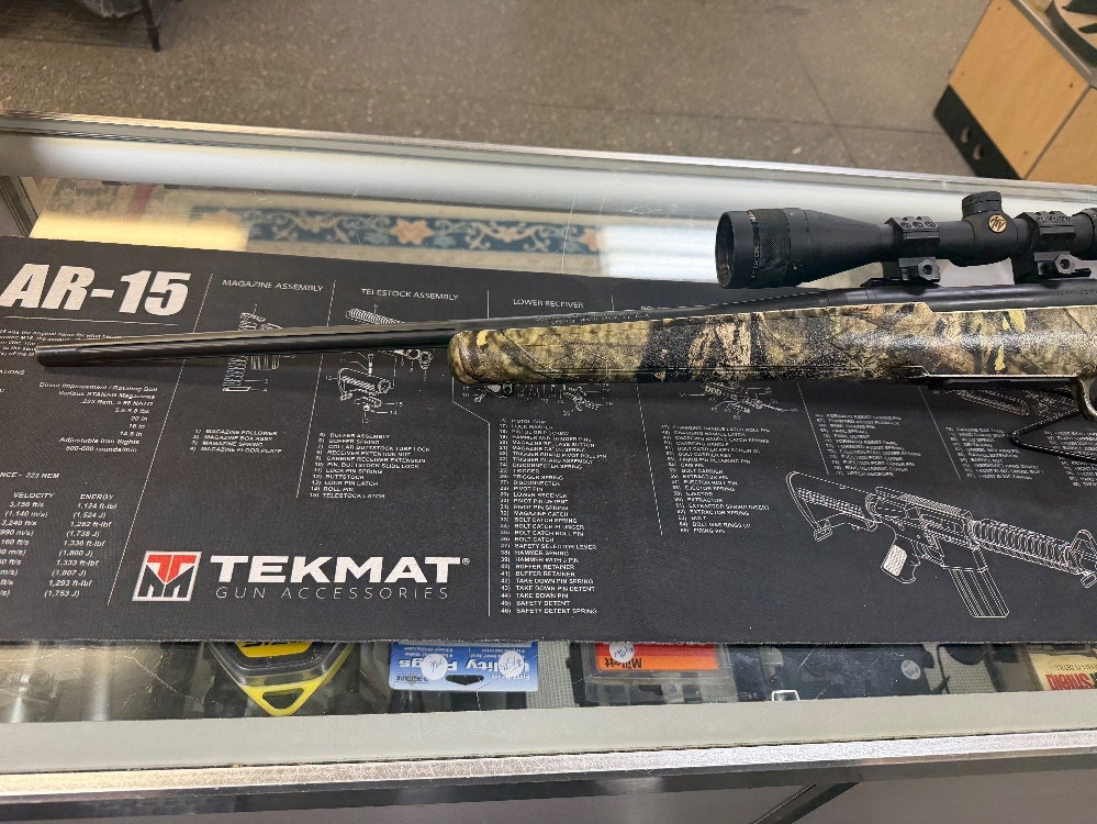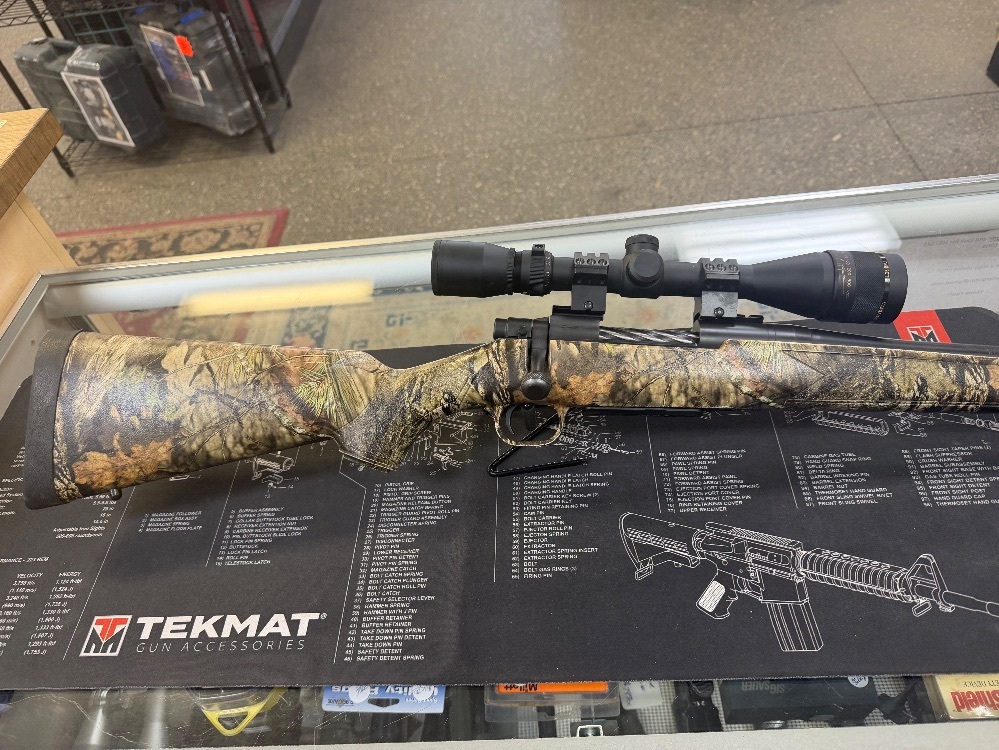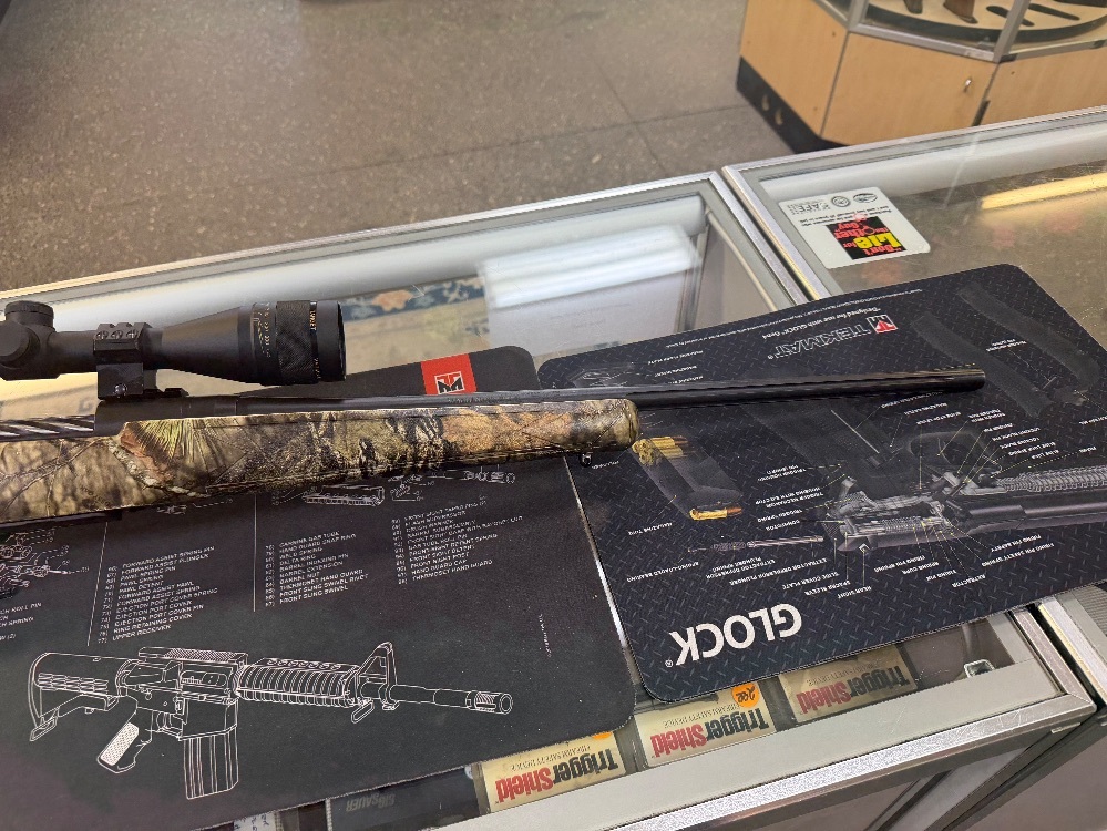 Mossberg model Patriot bolt-action rifle. Chambere din .308 Win. Comes with a 22" barrel and scope. This is a used firearm. Use pictures for accurate description. If you have any questions or need more detailed pictures, please contact us.