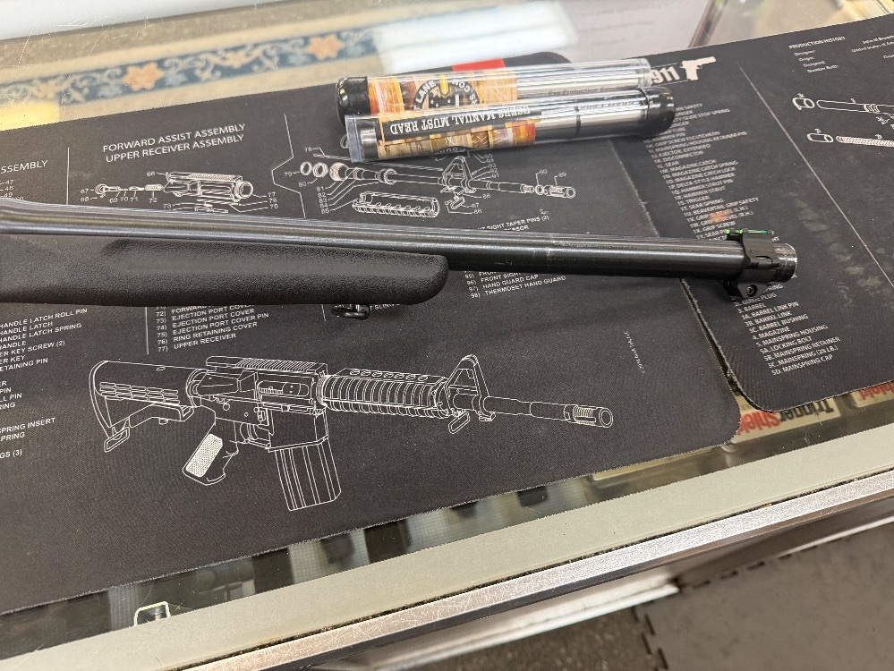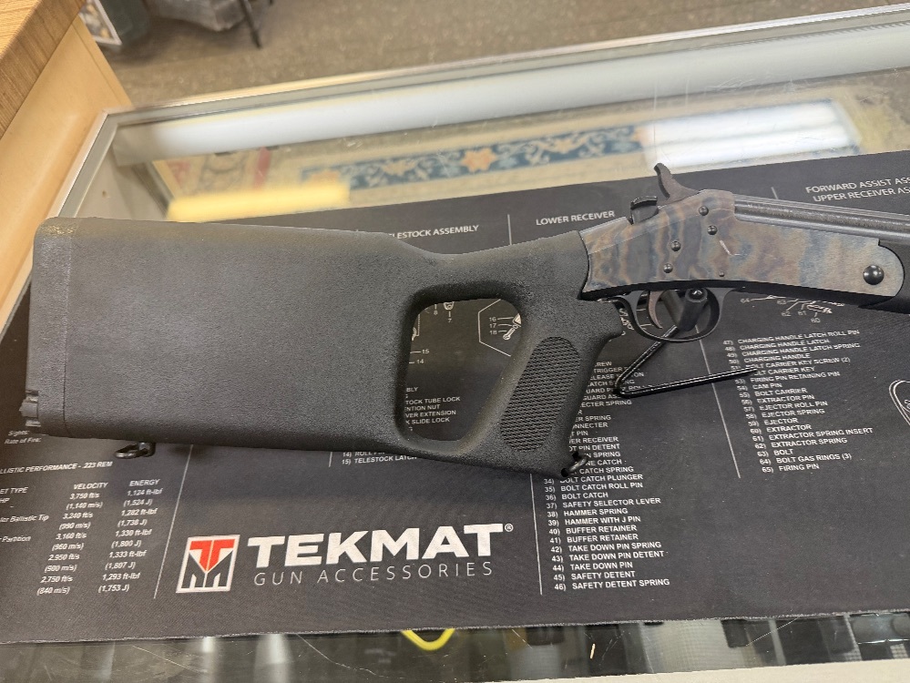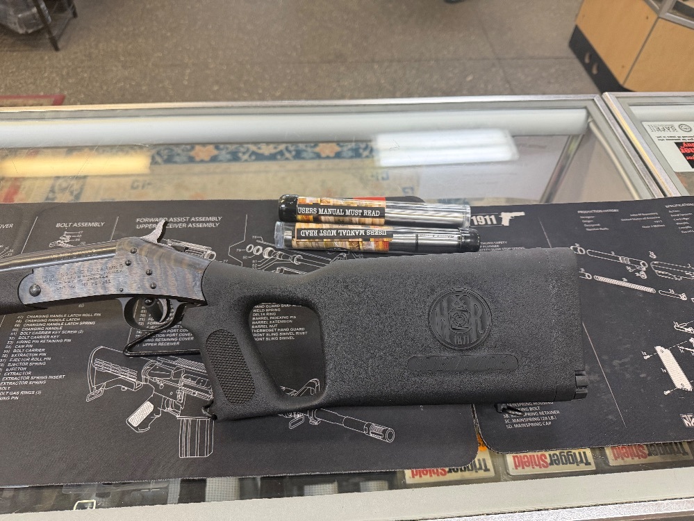 New England Firearms model Pardner single shot shotgun. Chambered in 12Ga, but modified to accept Survival calliber inserts. Comes with a 19" barrel and 2 inserts -9MM and 45ACP- This is a used firearm. Use pictures for accurate description. If you have any questions or need more detailed pictures, please contact us.