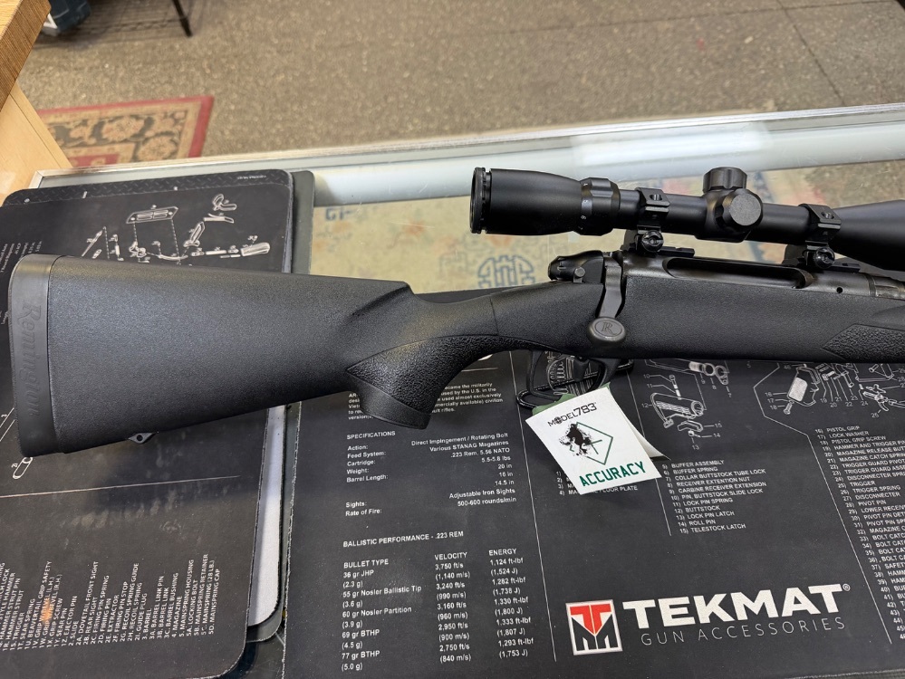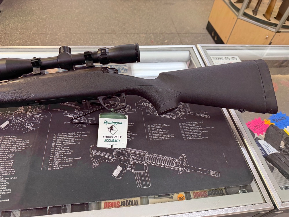 Remington model 783 bolt-action rifle. Chambered in .270. Comes with a 22" barrel and scope. This is a used firearm. Use pictures for accurate description. If you have any questions or need more detailed pictures, please contact us.