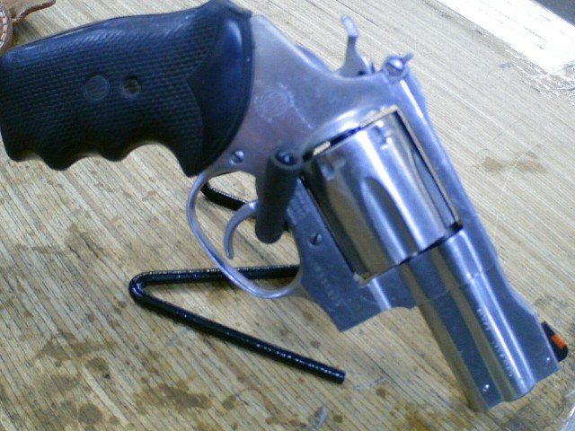 Rossi model M971 double action revolver. Chambered in .357 Mag. Comes with a 2.5" barrel and Galco leather holster. This is a used firearm. Use pictures for accurate description. If you have any questions or need more detailed pictures, please contact us.