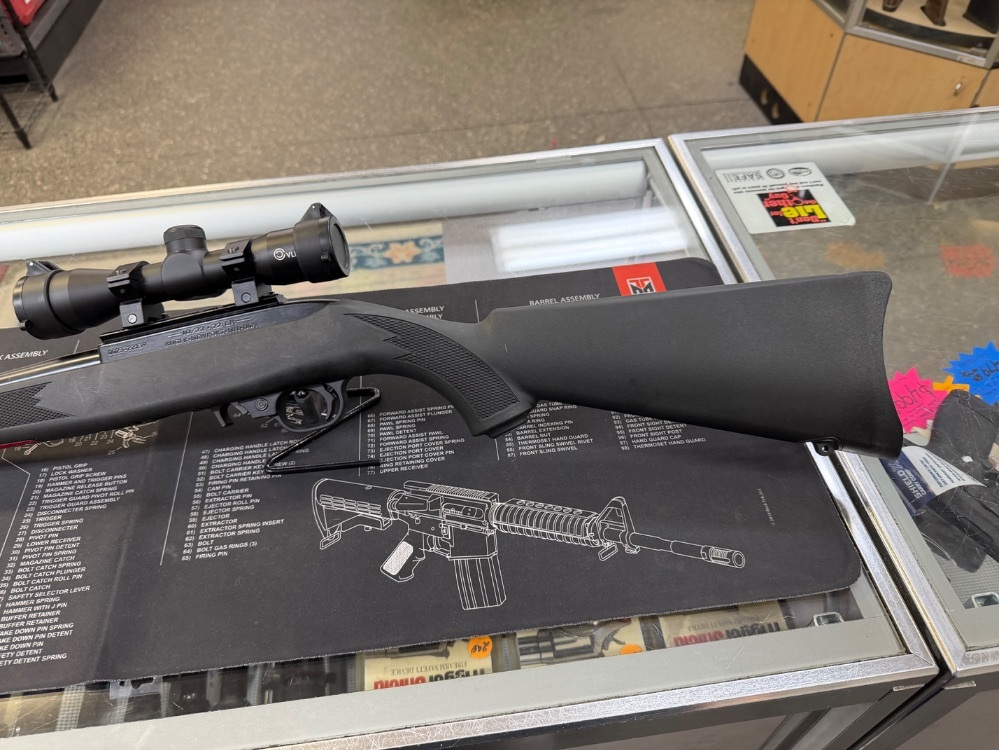 Ruger model 10/22 semi-auto rifle. Chambered in .22LR. Comes with a 16" barrel and VLife Scope. This is a used firearm. Use pictures for accurate description. If you have any questions or need more detailed pictures, please contact us.