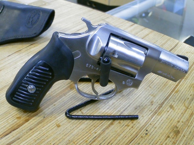 Ruger model SP101 double-action revolver. Chambered in .357 Mag. Comes with a 2.25" barrel and holster. This is a used firearm. Use pictures for accurate description. If you have any questions or need more detailed pictures, please contact us.