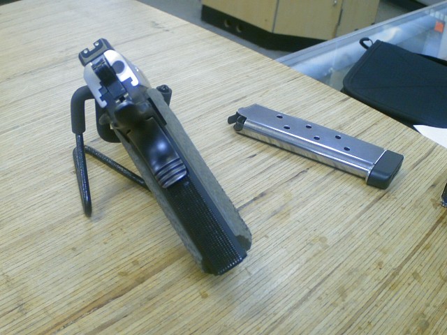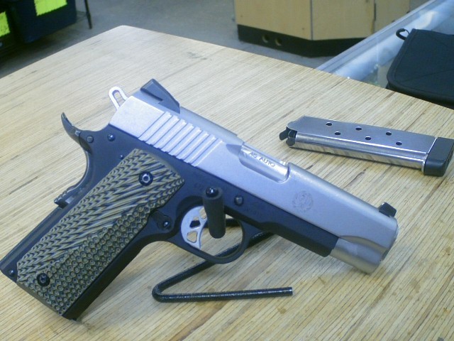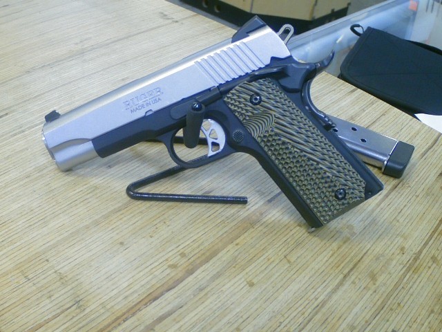 Ruger model SR1911 semi-auto pistol. Chambered in .45 ACP. Comes with a 4" barrel, soft case and 2 magazines. This is a used firearm. Use pictures for accurate description. If you have any questions or need more detailed pictures, please contact us.