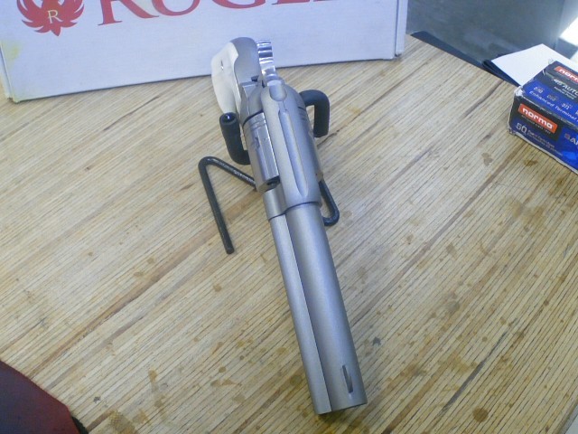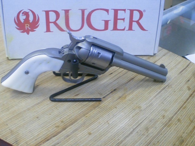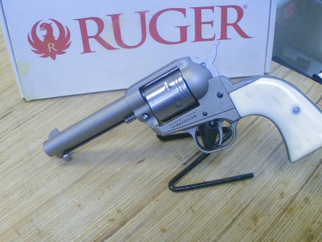 Ruger model Wrangler revolver. Chambered in .22LR. Comes with a 4.6" barrel, extra grips, holster and original factory box. This is a used firearm. Use pictures for accurate description. If you have any questions or need more detailed pictures, please contact us.