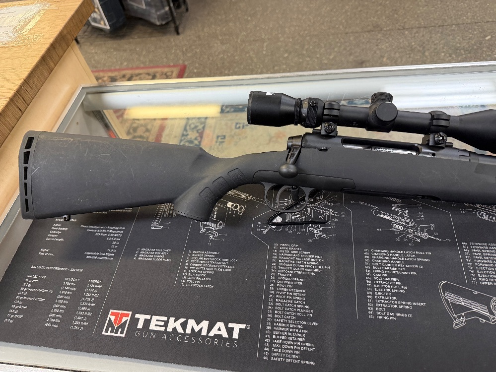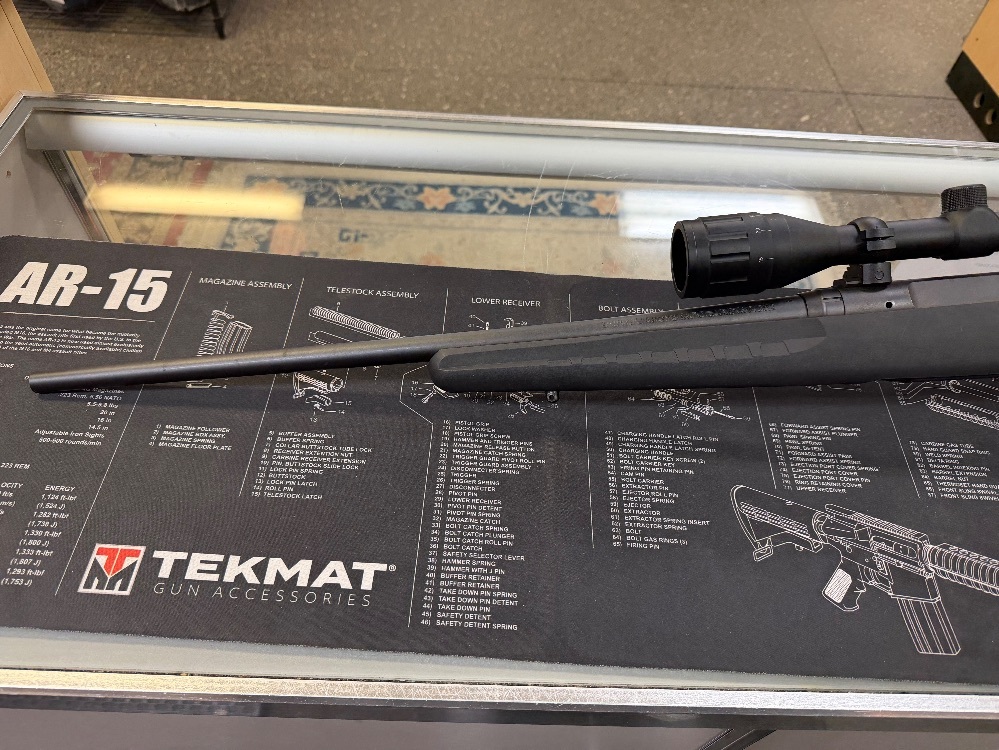 Savage Arms model Axis bolt-action rifle. Chambered in 6.5 Creedmoor. Comes with a 22" barrel and scope. This is a used firearm. Use pictures for accurate description. If you have any questions or need more detailed pictures, please contact us.