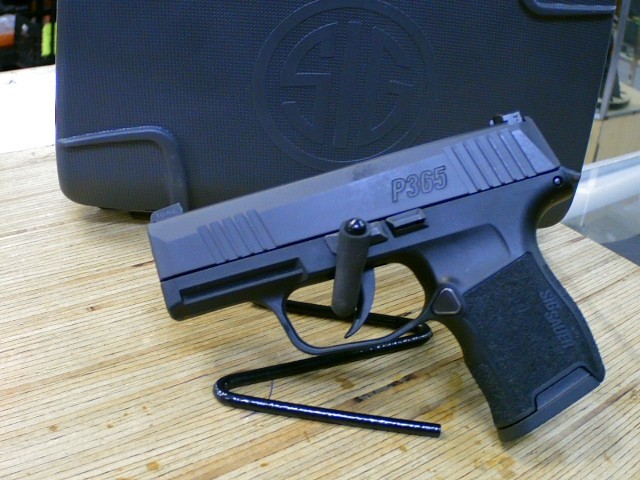 Sig Sauer model P365 semi-auto pistol, chambered in 9MM. Comes with a 3" barrel and original factory case. This is a used firearm. Use pictures for accurate description. If you have any questions or need more detailed pictures, please contact us
