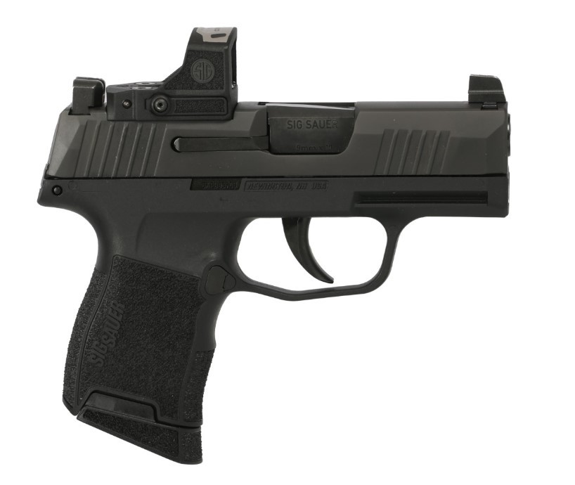 The P365X features a 3.10" barrel; the X grip module; X flat trigger and a crisp, clean P365 trigger pull. Includes ROMEO-RS compact and two 10rd steel magazines.
