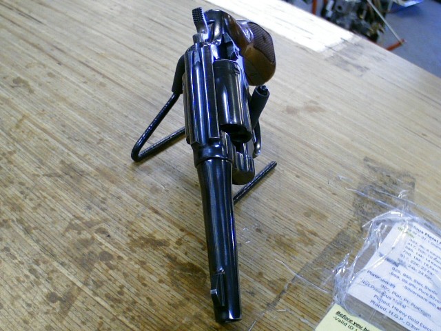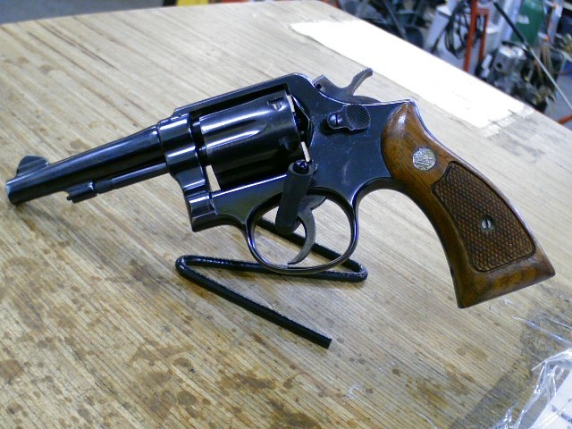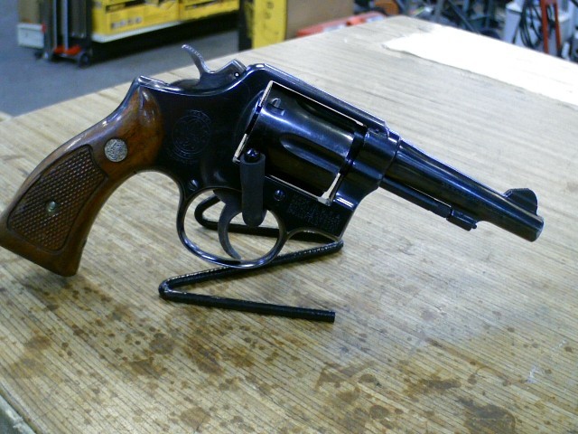 Smith & Wesson model 10-5 SA/DA revolver, chambered in .38 Spl. Comes with a 4" barrel. This is a used firearm. Use pictures for accurate description. If you have any questions or need more detailed pictures, please contact us