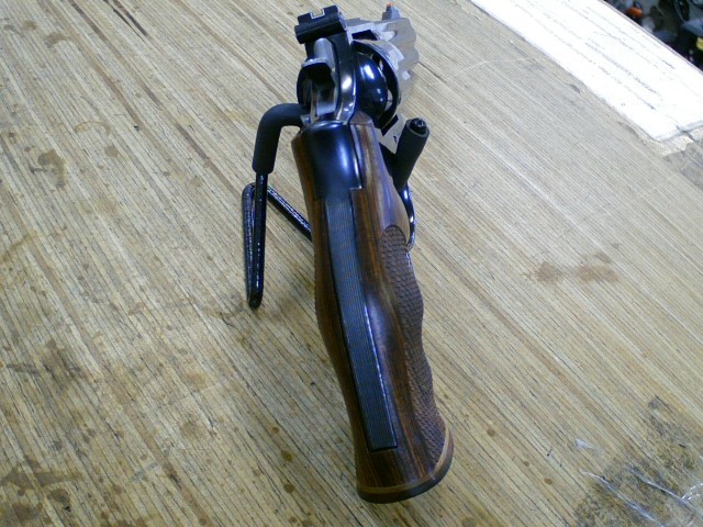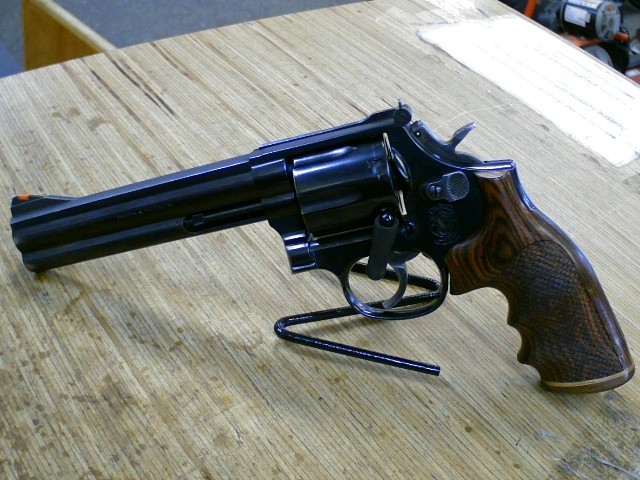 Smith & Wesson model M586-1 double action revolver, chambered in .357 Mag. Comes with a 6" barrel, hogue grips. This is a used firearm. Use pictures for accurate description. If you have any questions or need more detailed pictures, please contact us