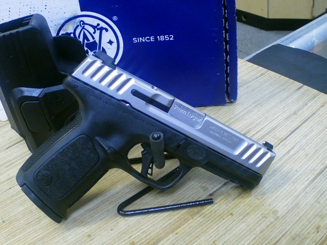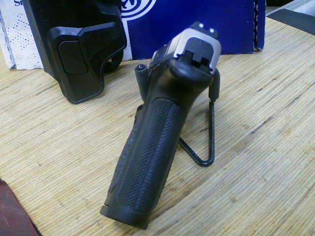 Smith & Wesson model SD9 2.0 semi-auto pistol. Chambered in 9MM. Comes with a 4" barrel, original factory box and holster. This is a used firearm. Use pictures for accurate description. If you have any questions or need more detailed pictures, please contact us.
