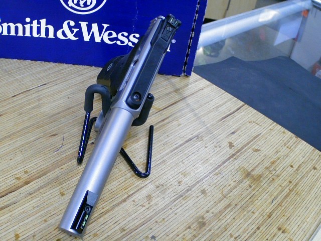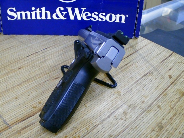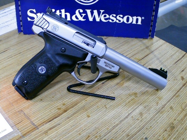 Smith & Wesson model SW22 Victory semi-auto pistol, chambered in .22LR. Comes with a 5.5" barrel, 3 magazines, rail and original factory box. This is a used firearm. Use pictures for accurate description. If you have any questions or need more detailed pictures, please contact us