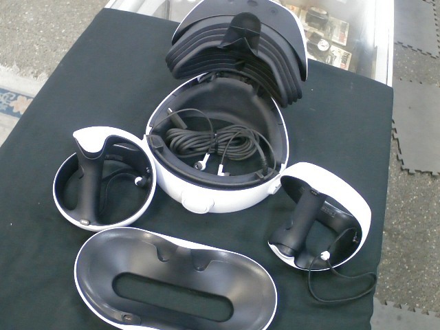 Sony PSVR2 Headset w/ 2 Controllers & Charger. This is a used product. Use pictures for accurate description. If you have any questions or need more detailed pictures, please contact us.