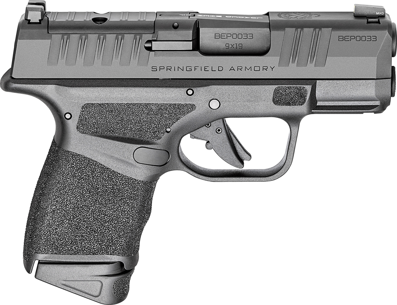 Springfield Armory micro-compact Hellcat features unique top slide serrations to maximize your grip on the slide; non-proprietary accessory rail allows you to accessories with your favorite light and/or laser; Tritium/Luminescent front sight, Tactical Rack U-Notch rear sight; reversible mag release, loaded chamber indicator and custom pressure activated grip texture. Gear Up pkg includes Crimson Trace CT-1500 Red Dot Optic, 5 magazines and dual range bag.