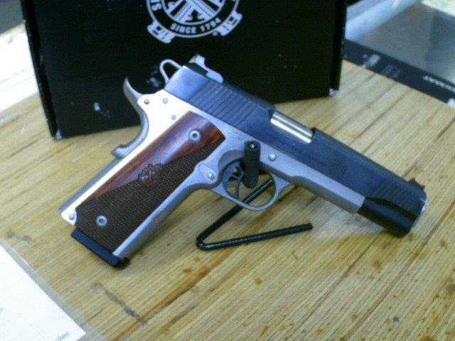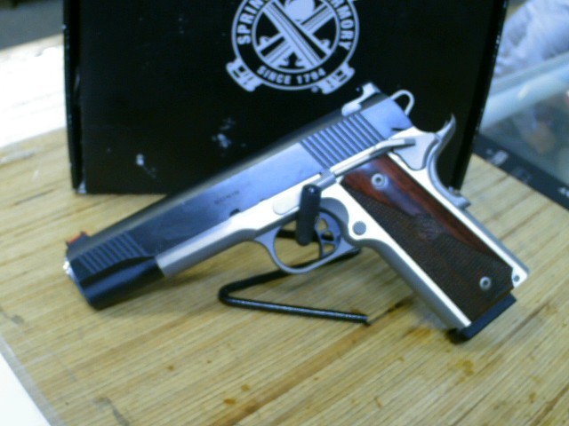 Springfield Armory model Ronin semi-auto pistol. Chambered in .45ACP. Comes with a 5" barrel and original box. This is a used firearm. Use pictures for accurate description. If you have any questions or need more detailed pictures, please contact us.