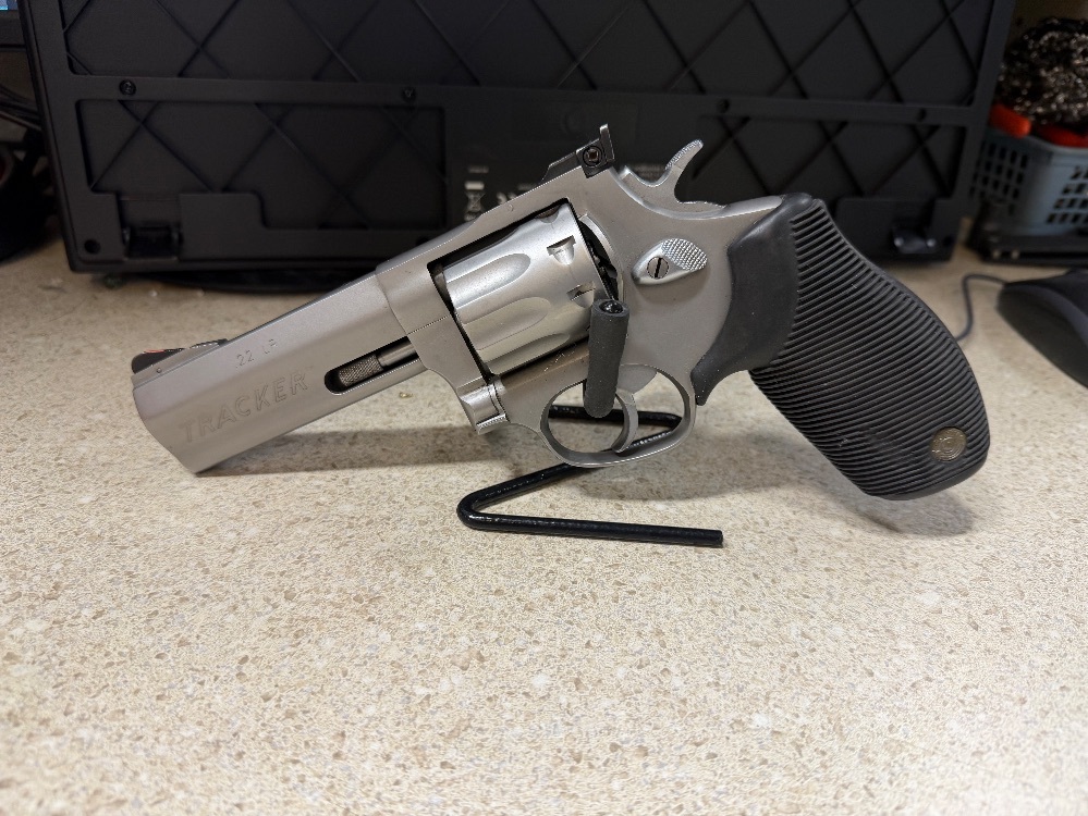 Taurus Arms model Tracker 990 double action revolver, chambered in .22LR. Comes with a 4" barrel. This is a used firearm. Use pictures for accurate description. If you have any questions or need more detailed pictures, please contact us