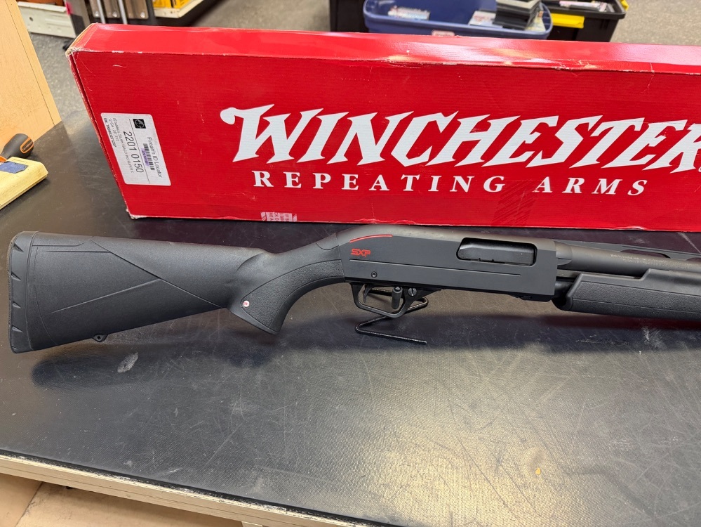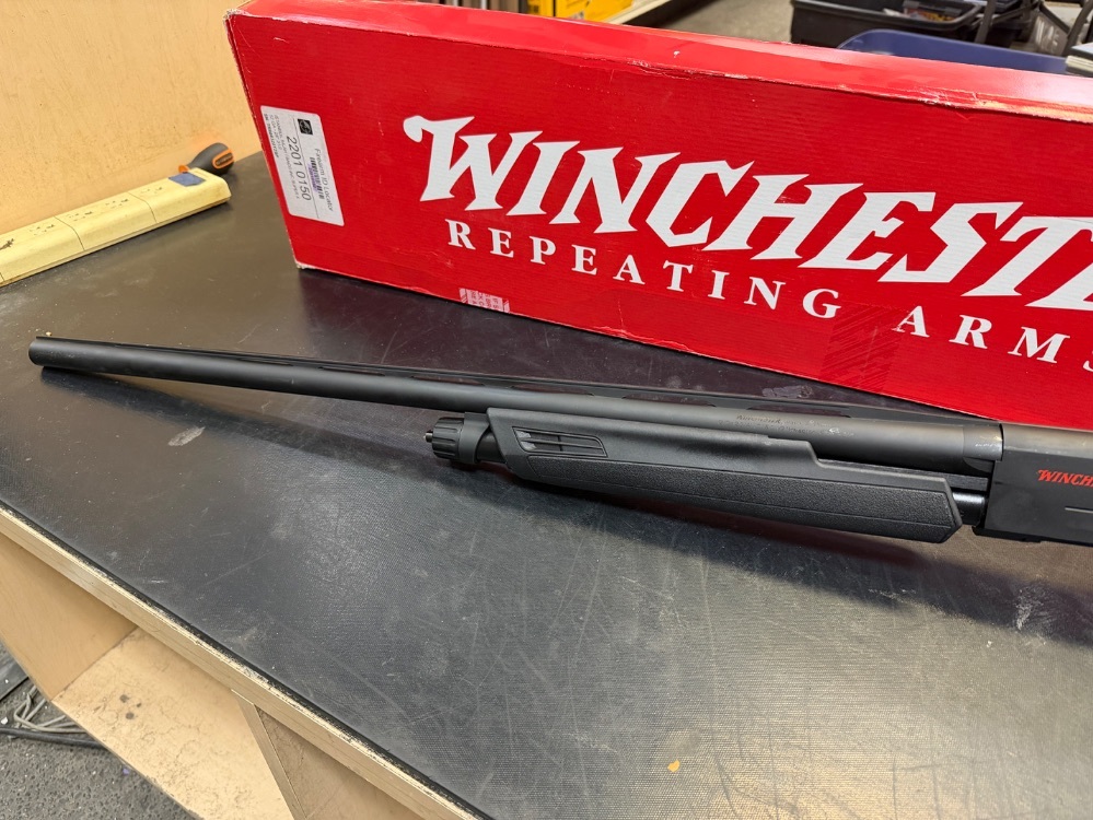 Winchester model SXP pump shotgun. Chambered in 12GA. Comes with a 28" barrel, 3 1/2" chamber and screw in chokes. Comes with original box. This is a used firearm. Use pictures for accurate description. If you have any questions or need more detailed pictures, please contact us.